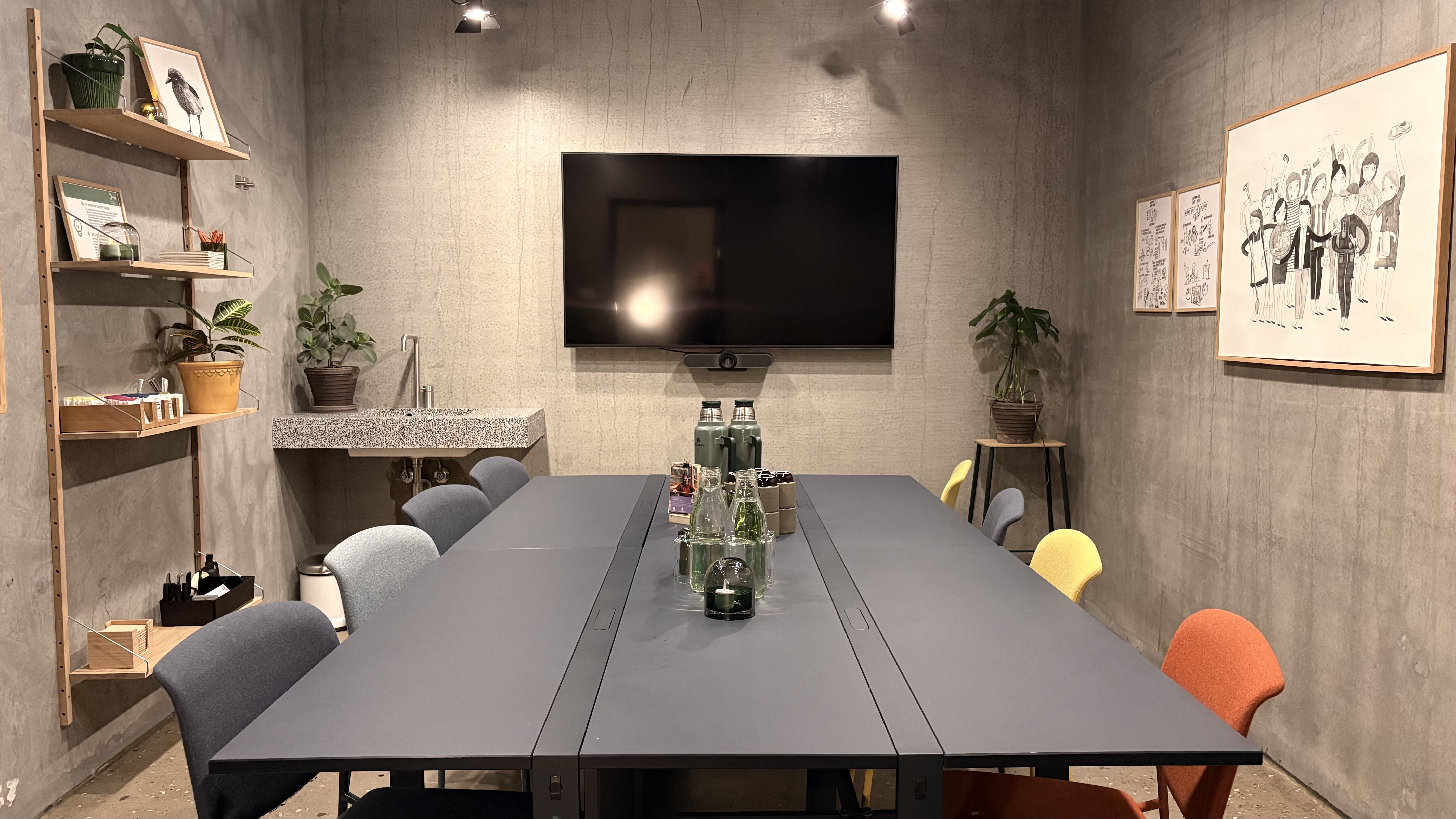 All rooms are fitted with soundproof window sections, ensuring meetings are undisturbed by external noise. Additionally, there are dark curtains that can be drawn for total privacy if needed.